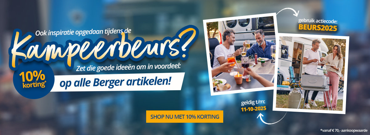 In onze webshop vindt u alles over kamperen en vrijetijdsbesteding voor caravan -en camper liefhebbers en kampeerders. Fritz Berger biedt u een ruime keuze aan kampeeruitrusting -en benodigdheden, met merken die staan voro kwaliteit en betrouwbaarheid.