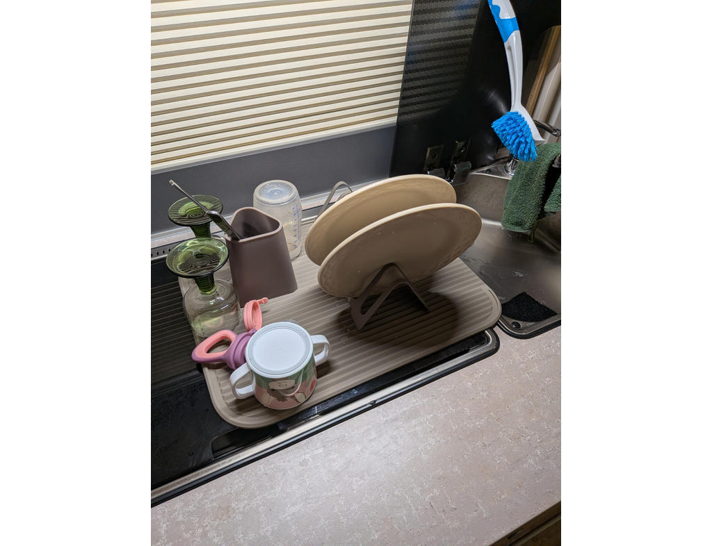 „We gebruiken de set voornamelijk in de caravan. Het is perfect als je tussendoor de ontbijtspullen, een paar kopjes, messen of zelfs babyflesjes wilt afwassen en niet alles meteen wilt drogen.“