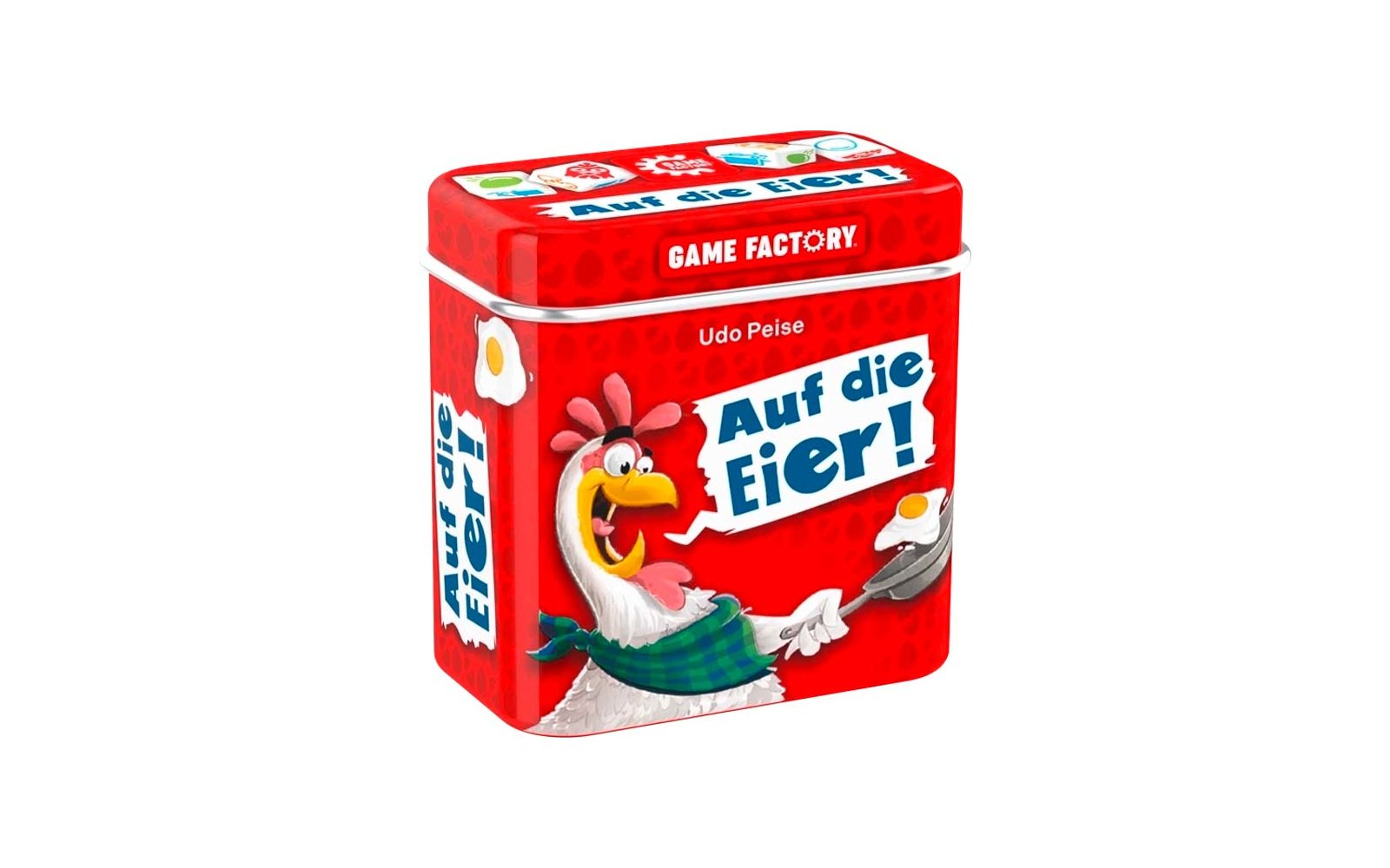 Nach dem Würfelspiel „Auf die Nüsse“ geht es jetzt auf die Eier: Anders als Nüsse müssen Eier erst zubereitet werden, am Herd führt kein Weg vorbei. Du würfelst dir die punktereichsten Kombinationen aus Spiegeleiern und Bratpfannen sowie Frühstückseiern und Kochtöpfen zusammen und schnappst dir auch die flinken Hühner, wenn du kannst. Doch hüte dich vor den faulen Eiern, sonst ist dein Start in den Tag schnell im Eimer.