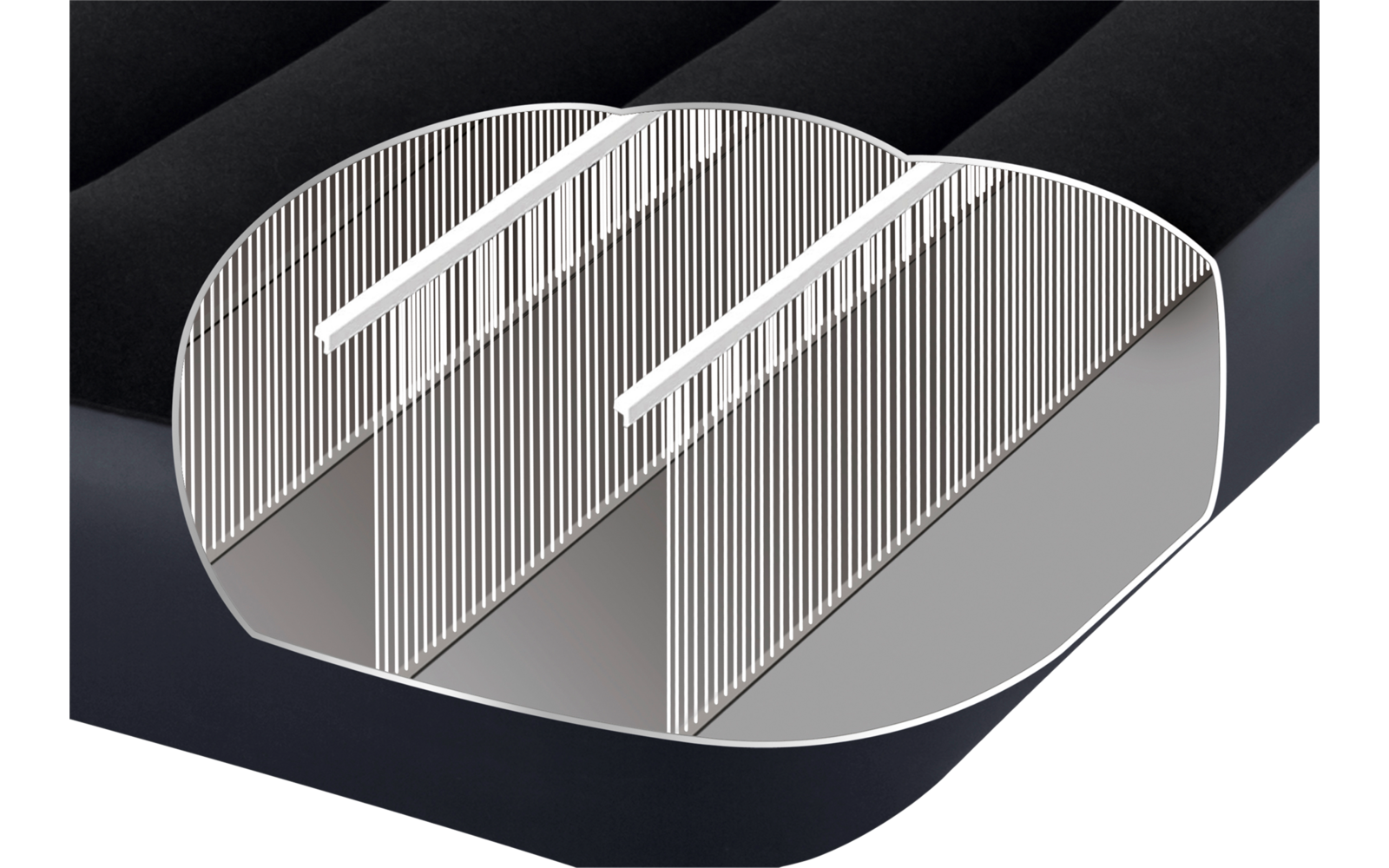 | geïntegreerde elektrische pomp (opgeblazen in 2 minuten) | comfortabele hoogte van 25 cm met geïntegreerd kussen | stevige fibre-tech constructie (vezels met hoge sterkte) | gevlokt oppervlak en gelijkmatig liggend oppervlak |