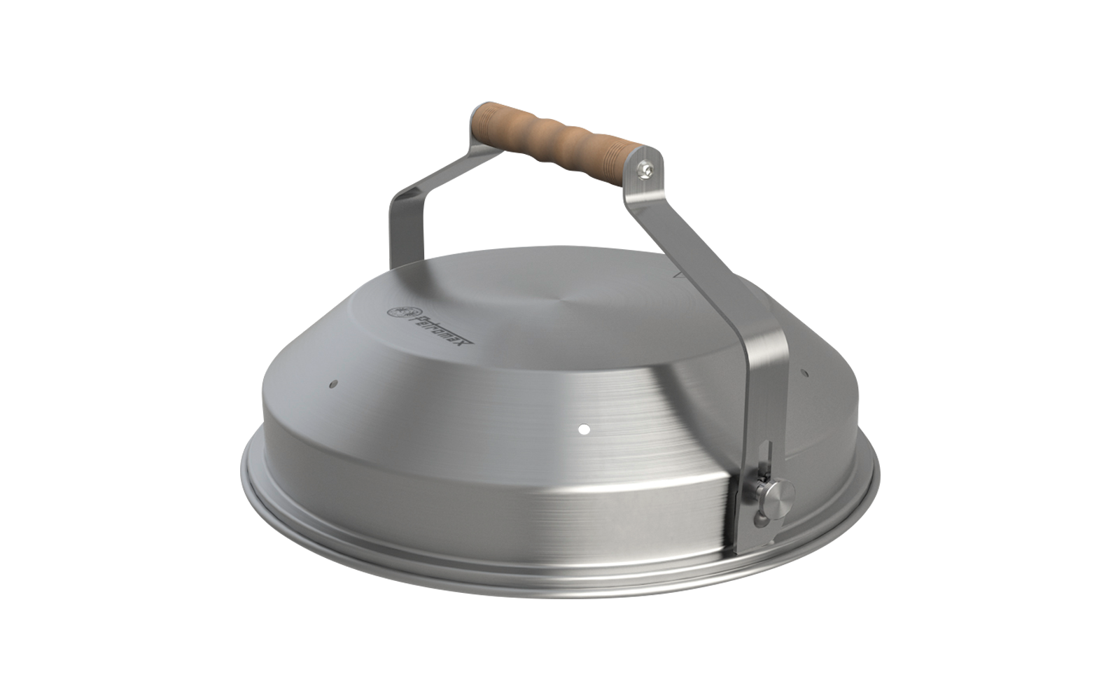 Met de roestvrijstalen Atago grillkap tover je je Petromax Atago in een handomdraai om in een veelzijdige buitenoven. De motorkap houdt de opstijgende hitte in het systeem zodat je knapperige pizza's, brood of gebraad kunt bereiden met boven- en onderwarmte en tegelijkertijd brandstof kunt besparen. Dankzij de draaibare handgreep kun je de bonnet compact opbergen en samen met de Atago vervoeren. De houder zorgt voor een stevige grip tijdens het grillen. Ventilatieopeningen zorgen voor een gelijkmatige luchtcirculatie, beschermen de kolen tegen de wind en voorkomen dat de sintels verstikken. De muts is na gebruik gemakkelijk schoon te maken.