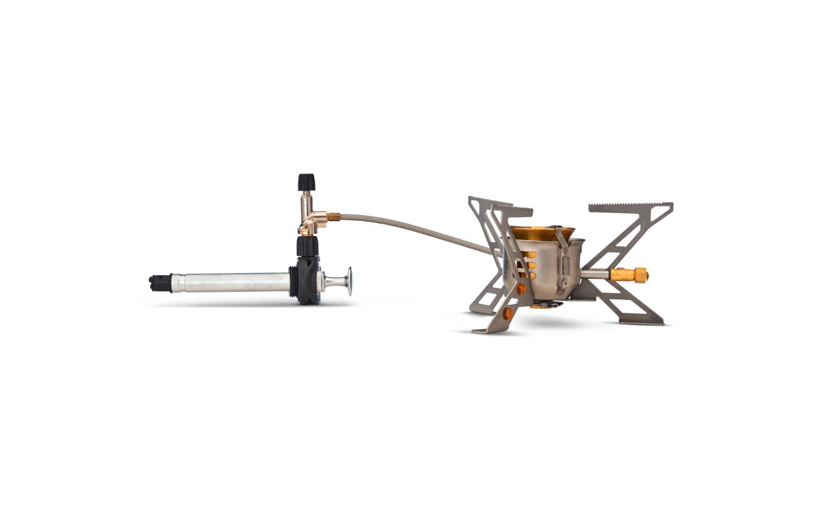 Der MultiFuel Stove ist ein robuster Mehrstoffkocher für Expeditionen und anspruchsvolle Touren. Dank der geringen Anzahl beweglicher Teile ist er wartungsarm und zuverlässig, selbst unter extremen Bedingungen. Die breite 2700 W Flamme eignet sich ideal zum Schneeschmelzen oder Wasserkochen für ein bis vier Personen. Ein Liter Wasser kocht in etwa 4:30 Minuten. Der niedrige Schwerpunkt ermöglicht die Nutzung größerer Töpfe und Pfannen, während die einklappbaren Topfauflagen aus Edelstahl sicher einrasten und platzsparend verstaut werden können.