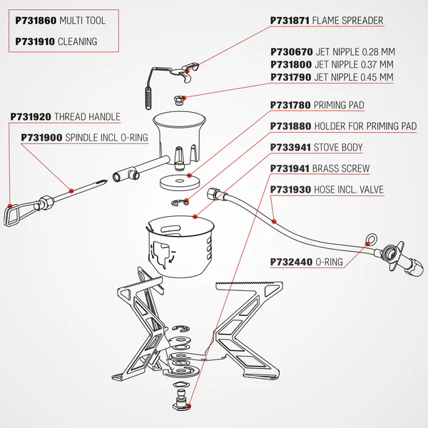 - Mehrstoffkocher ohne Brennstoffflasche.