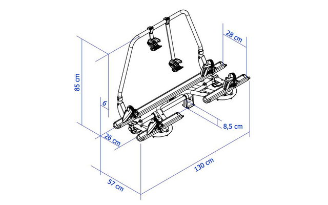 | Ontworpen voor montage op het A-frame | Met de optionele derde rail en fietsklem kunnen op de drager 3 fietsen worden vastgezet | volledig kantelbaar | gemakkelijk laden van neerlaatbaar platform |