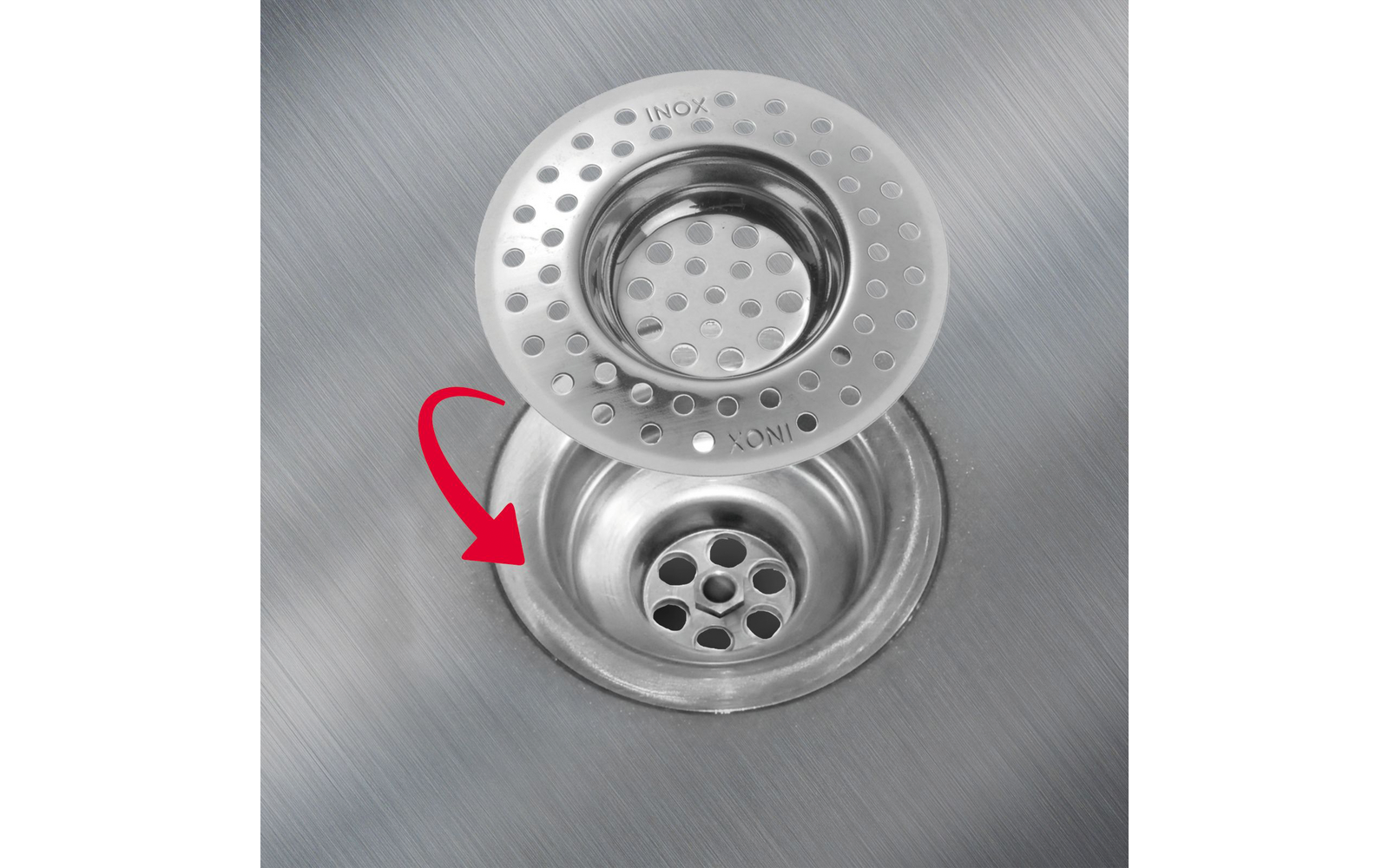 - Gleichmäßige Perforation: Wasser fließt ab, Speisereste, Haare und Krümel werden aufgefangen