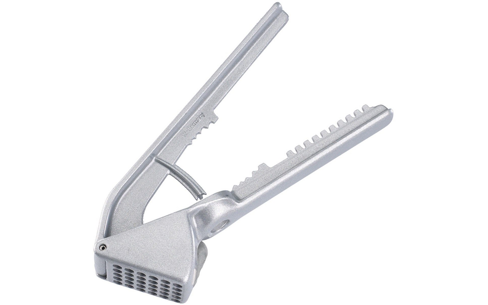 Mit der Westmark Extracta presst Du Knoblauch und Zwiebeln fein mit Einlegesieb und nutzt die Funktionselemente am Griff zusätzlich als Olivenentsteiner, Nussknacker und Fischentschupper. So bereitest Du Speisen vielseitig zu und verstaust das handliche Format einfach in der Schublade.